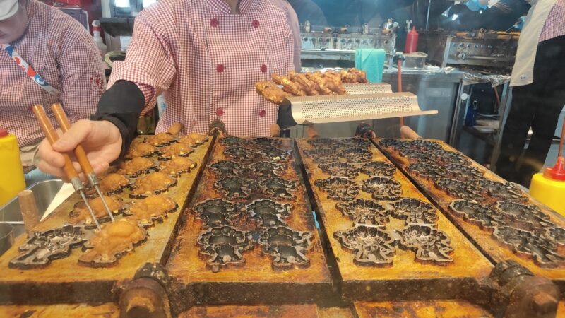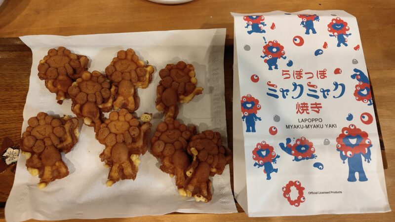 ここにしようと思って入ると、なんと以前に娘が「食べた?」と言ってたミャクミャク焼きが売っていました。